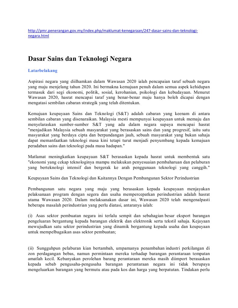 Dasar Sains Dan Teknologi Negara Aspirasi Negara Yang